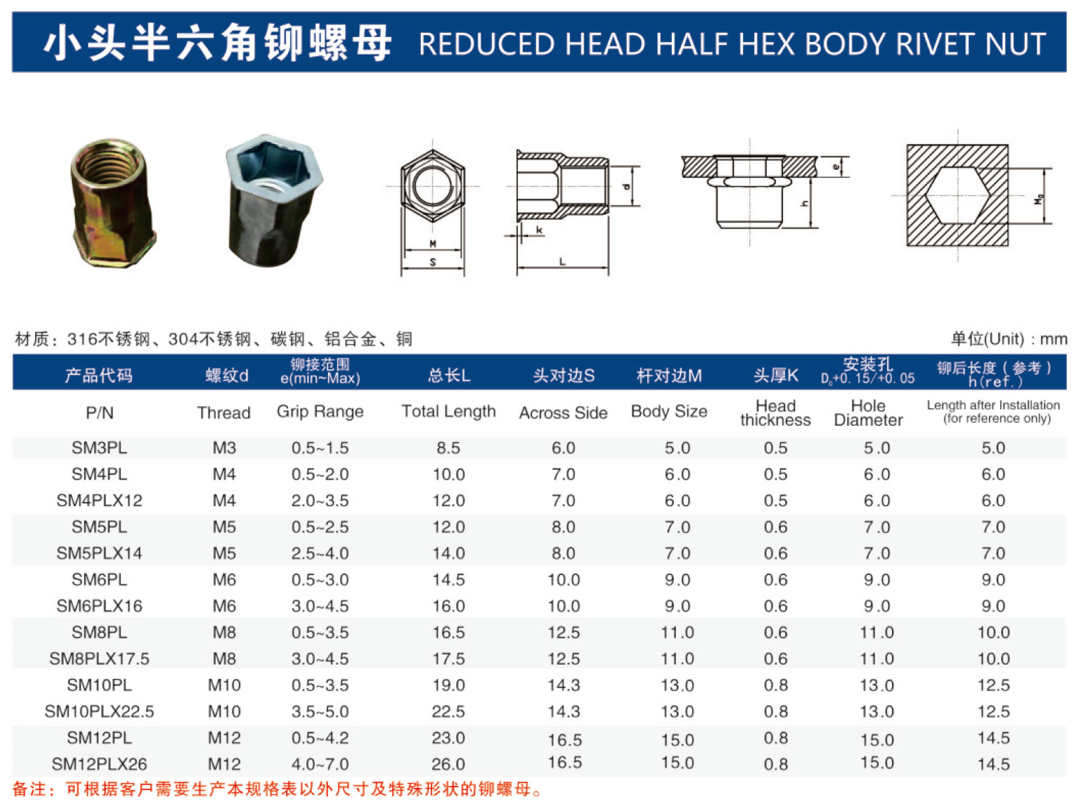 拉帽厂家生产的小头半六角铆螺母产品的详细参数,实时报价,价格行情。